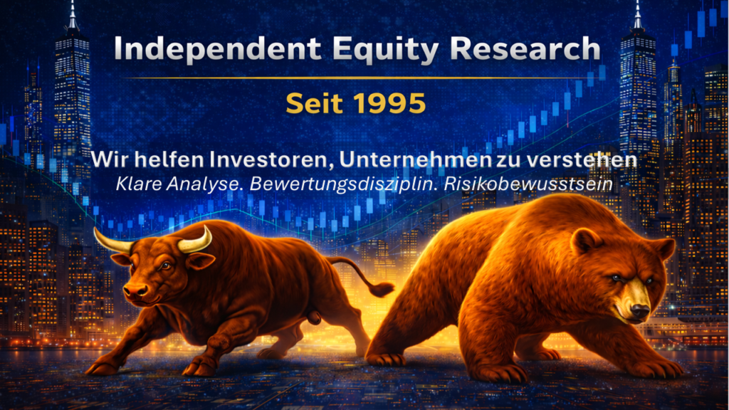 Gegründet im Jahr 1995, konzentriert sich SISM Research auf die Bereitstellung klarer, analytischer Unternehmensanalysen auf Basis öffentlich zugänglicher Informationen. Unsere Arbeit legt besonderen Wert auf Transparenz, Bewertungsdisziplin und Risikobewusstsein.