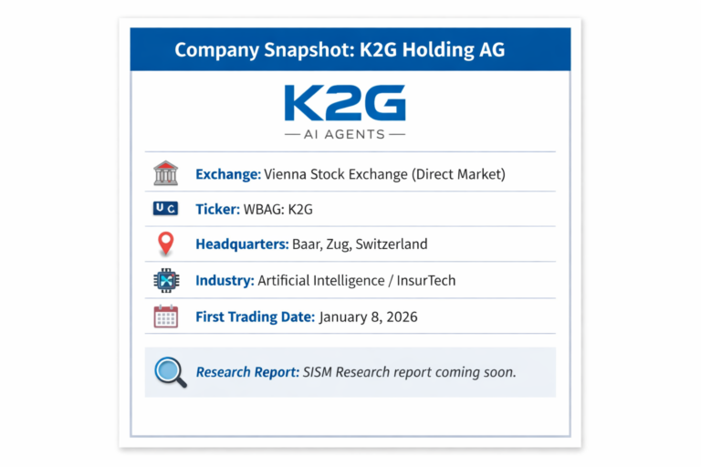 On January 6, 2026, K2G Holding AG announced that its shares will commence trading on the Vienna Stock Exchange in the Direct Market segment, with the first trading day scheduled for January 8, 2026.